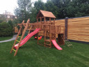 Детский городок Крепость – это доступная и популярная модель с башней, домиком, тремя качелями и большим дополнительным функционалом.