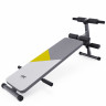 Скамья для пресса DFC DB127/2 с зеленым рисунком – надежный тренажер для домашних тренировок! Эта скамья спортивная сочетает в себе прочность, функциональность и удобство. Стальная рама из профиля 38 х 38 х 1,2 мм гарантирует прочность и устойчивость даже при интенсивных нагрузках. Максимальный вес пользователя составляет 120 кг, что делает скамью подходящей для большинства пользователей. 5 уровней регулировки угла наклона скамьи для жима позволяют менять нагрузку и эффективно прорабатывать разные группы мышц. Вы можете выполнять подъемы корпуса для прокачки пресса, подъемы ног для нижнего отдела живота, а также использовать скамью для упражнений с гантелями. Эргономичные регулируемые валики из вспененного материала обеспечивают комфорт во время тренировки. Нижние валики регулируются на 4 уровня, что позволяет надежно фиксировать стопы. Дополнительные удобства включают стойку для отжиманий и упоры, расширяющие спектр упражнений. Кор-доска отличается устойчивостью благодаря прорезиненным ножкам, которые защищают пол от царапин и предотвращают скольжение. Обивка выполнена из водонепроницаемой экокожи, что облегчает уход за тренажером.