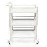 Тележка оснащена шестью навесными ёмкостями: двумя вёдрами с крышками (175×175×230 мм), двумя банками (Ø 130×140 мм), откидным контейнером (345×100×360 мм) и навесным лотком (315×160×130 мм). Доска для сердечно-лёгочной реанимации (535×415×20 мм), держатель баллона с ремнями и розетка с кабелем (2,5 м) обеспечивают функциональность в критических ситуациях. Четыре колеса Ø 124 мм с полиуретановыми шинами и тормозами на двух передних колёсах гарантируют мобильность. Габариты (950×540×1065 мм) и масса (42–51,9 кг) обеспечивают устойчивость. Все поверхности устойчивы к дезинфекции.